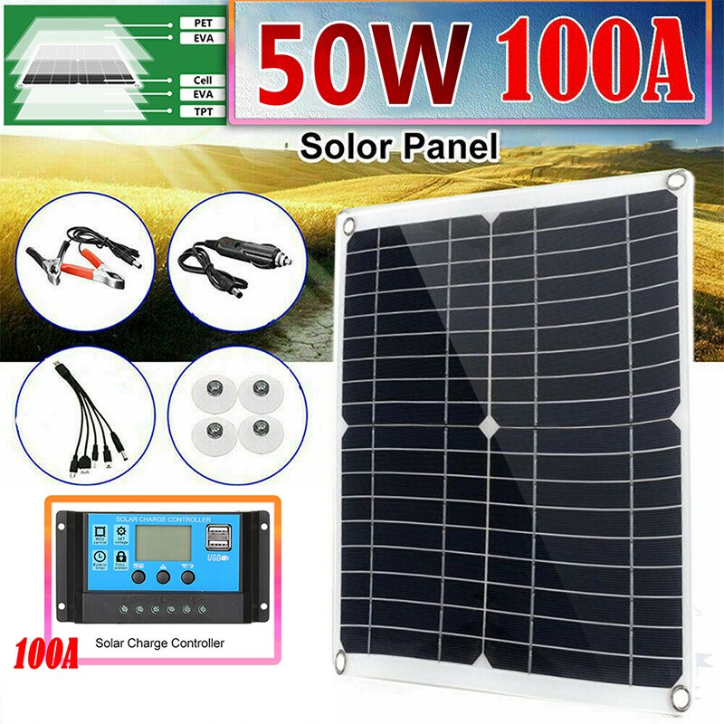 50W Solar Charger Outdoor Solar Panel Battery Charger Components with